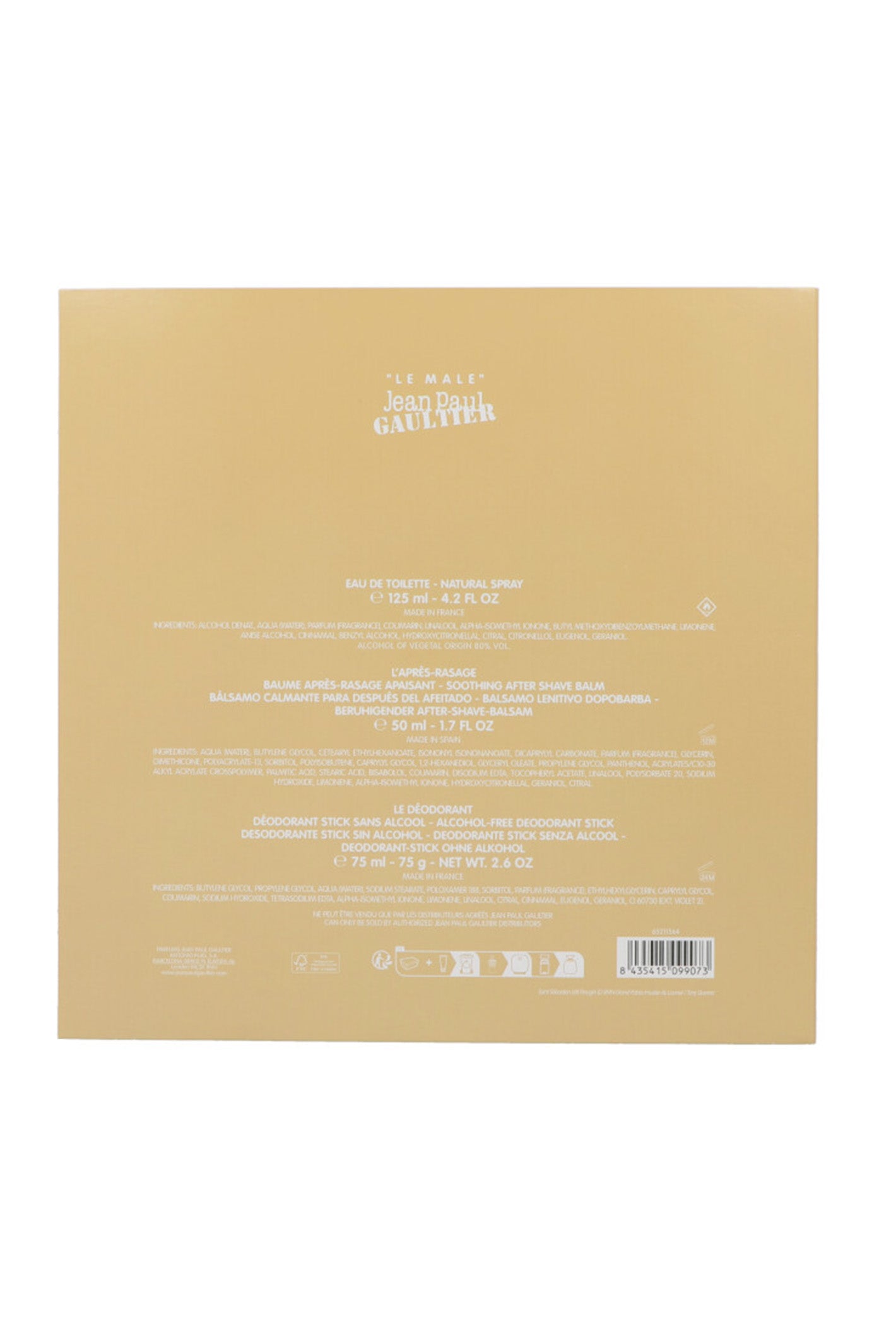 Während sich der Duft entfaltet, treten aromatische Nuancen von Lavendel , Zimt und Orangenblüte hervor und verleihen der Komposition Wärme und Eleganz. Eine Basis aus süßen und holzigen Akkorden, darunter Vanille , Tonkabohne , Amber und Sandelholz , sorgt für anhaltende Tiefe und zeitlose Maskulinität. Der After-Shave-Balsam pflegt und beruhigt die Haut und verstärkt den Duft dezent – für ein angenehmes und langanhaltendes Dufterlebnis. Der Deodorant-Stick schenkt den ganzen Tag Frische und Selbstvertrauen. In einem ikonischen Flakon in Form eines männlichen Torsos verkörpert dieses Set Stärke und Sinnlichkeit und unterstreicht die Einzigartigkeit der Marke Jean Paul Gaultier . Ideal für den selbstbewussten Mann, der sich von der Masse abheben möchte: Dieses Set ist das perfekte Geschenk und vereint Funktionalität mit Prestige und zeitloser Eleganz.